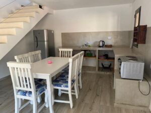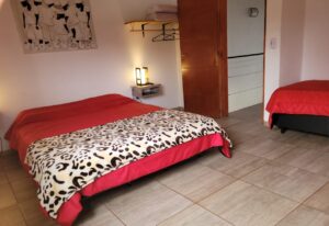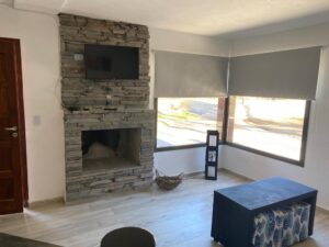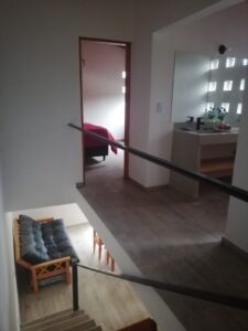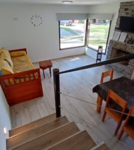 El complejo de cabañas posee 5 cabañas de estilo duplex con capacidad para 5/6 personas. Cuentan con un dormitorio en planta alta, equipada con sommier matrimonial, sommier individual y baño. En planta baja, tenemos cocina, comedor y living integrados, futon para 2/3 personas y hogar a leña